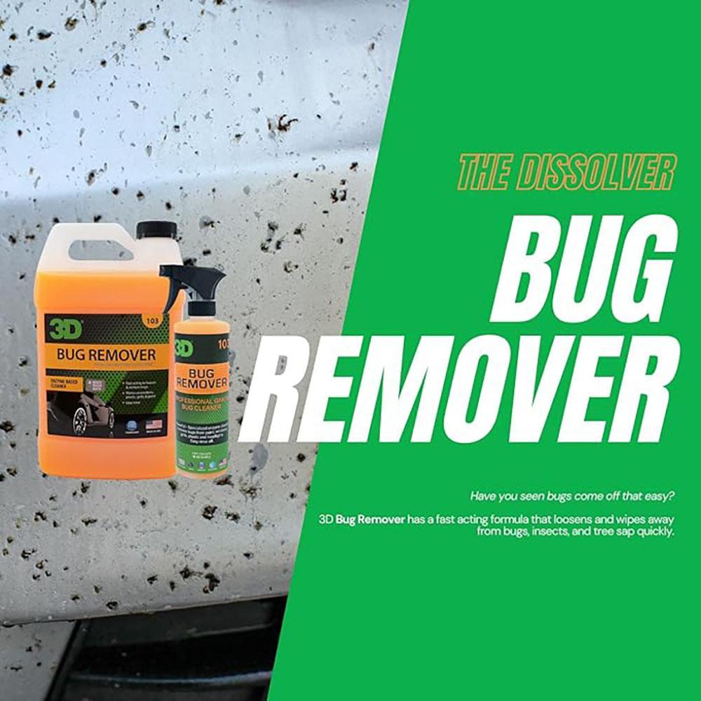 The 3D Bug Remover is a strong cleaner, formulated to tackle the toughest bug splatters, ensuring your vehicles exterior remains pristine! 3D engineered this product to dissolve protein based stains left from insects, sap and other organic contaminants, with ease. The powerful yet biodegradable and safe formula loosens even baked on contamination that ordinary car soaps cannot handle, helping you safely remove everything with less effort. Simple to use and unbelievably effective, the 3D Bug Remover works straight from the bottle or diluted for more precise cleaning needs. Just spray the affected area, let the solution work its magic, and wipe or rinse away for a spotless surface. It is gentle on exterior surfaces but tough on guts, making it a great addition to any detailing collection. Say goodbye to frustrating scrubbing and hello to a cleaner, bug gut free surface with the 3D Bug Remover!Customer Reviews