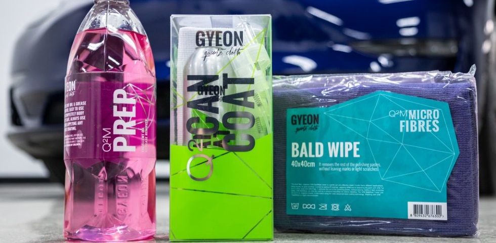 First, always perform a wipe down of the surface with Gyeon quartz Q²M Prep. This will remove the polishing oils or lubricants from a previous detailing step and make sure we have a direct bond between the coating and the paint. If an exceptionally oily polish was used, you may need a bit more of a de-greasing stage to make sure all oils are removed.