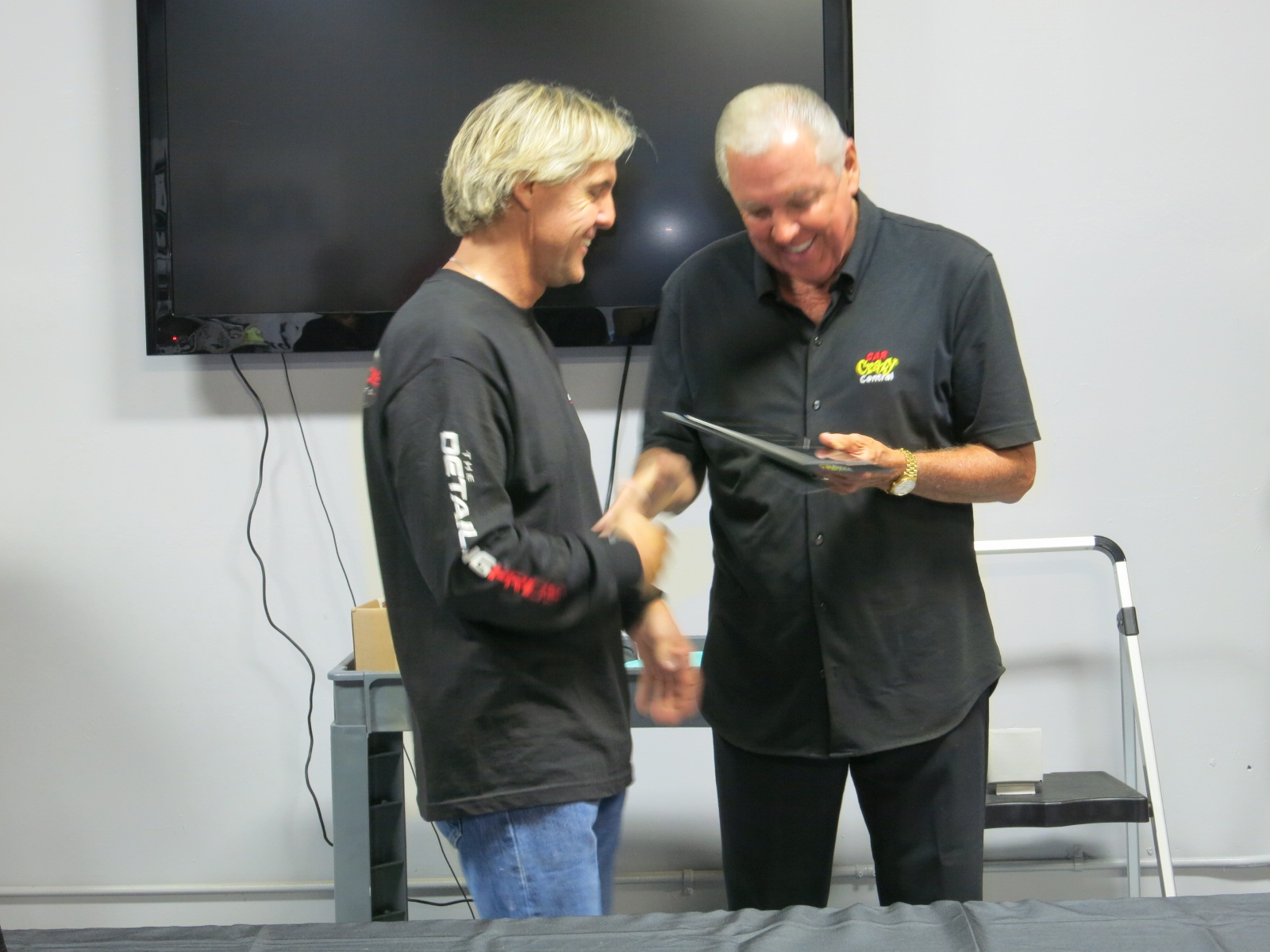by Greg @ DIEveryone was extremely excited to have Barry Meguiar come to the California Car Care Expo. He is a legend in the detailing industry who helped transform Meguair’s in to a retail giant and is the face of the Car Crazy TV show running 16 years. I was really looking forward to Barry showing up until…. I saw him arrive just as I began my presentation to the group and I thought to myself “I’m going to lose everyone’s attention as soon as they see Barry”. However Barry quietly walked around back virtually unseen and demonstrated the quiet dignity and exceptional integrity he runs his business and life by. Mike Stoops later mentioned to me that Barry is keenly aware of his surroundings and he would not walk in on another speaker, it was a classy move and I was grateful. I was able to finish my presentation, we enjoyed dinner together as Barry mingled with everyone while eating the amazing tacos provided by TDP member Sergio.