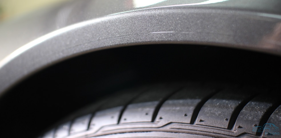 It is not unusual for rocker panels and areas near the wheel wells to see an extraordinary amount of rock chips and damage from the road. Cars with wide fenders and/or tires that have tread exposed beyond the wheel well are especially prone to damage. Some manufacturers are installing PPF at the factory. Porsche installs PPF on the rear fender of 911’s and Corvette Stingrays have film installed on the rear side of the rocker panels. If you take a look at the quality and coverage of PPF installed on the factory level you’ll find a lot of exposed surface and film that has a lot of texture/orange peel. It isn’t pretty and it leaves a lot exposed paint. Factory PPF can be a bit time consuming to remove. But once removed, quality top coated PPF can be installed in a way that offers superior aesthetics and coverage.