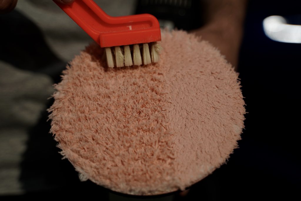 2. Take a conditioning brush and brush out the face of the pad, this will dislodge any polishing residue. I always recommend following up with a microfiber to grab any additional residue still stuck in the pad. The brush can be extremely effective with microfiber pads with aiding in keeping the fibers straight.