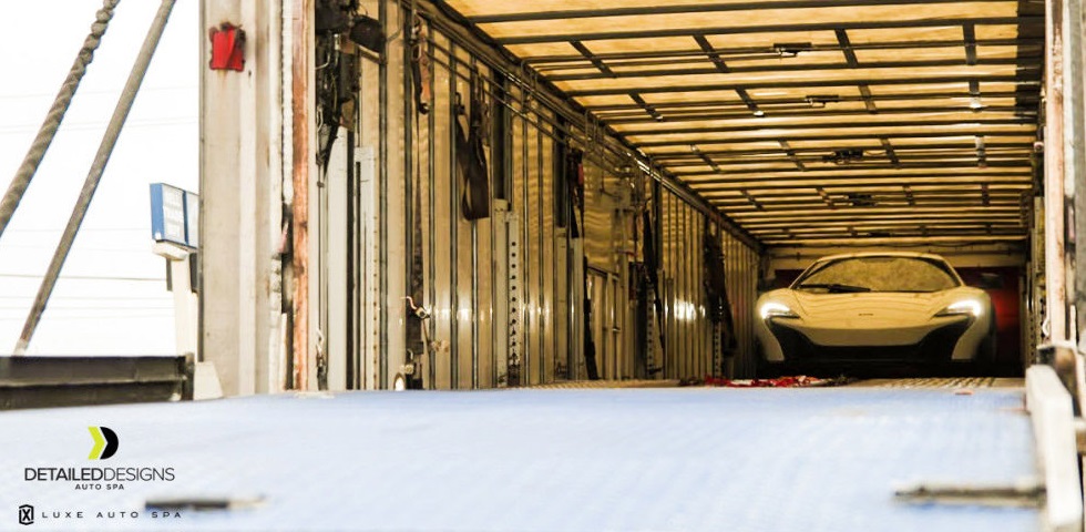 Let’s get it on! The 675LT arrived via an enclosed car hauler: