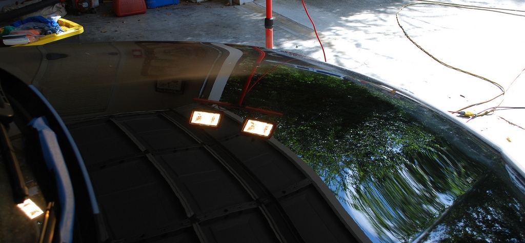 We removed the clear bra as it was totaled and what was left was a small portion of the hood in perfect shape and a large portion with major chemical damage. The clear coat looked like it was turned into a semi-solid then set back up with a lot of haze and funky orange peel.