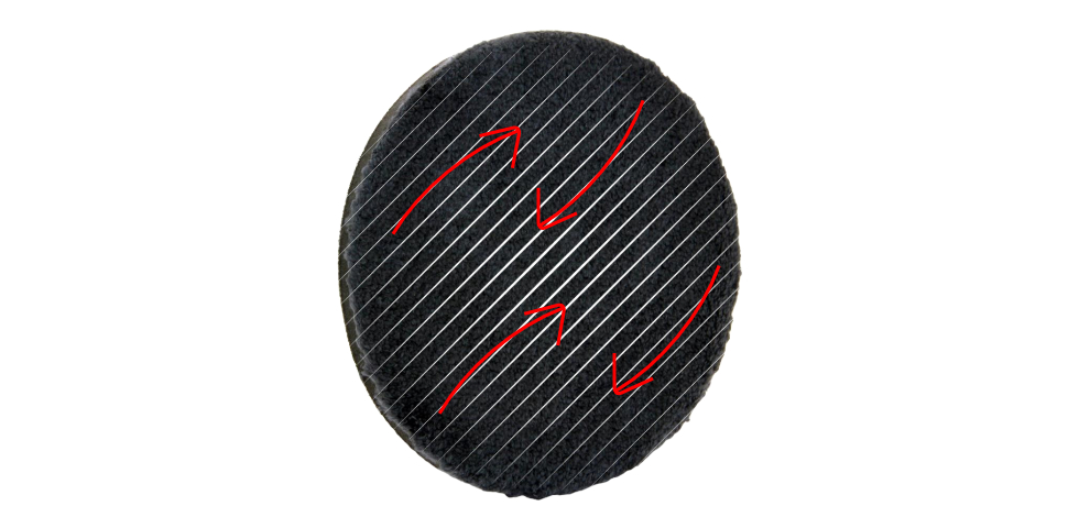 • Microfiber Pad? If you are working with a microfiber pad, the priming is slightly different. In this case, apply light lines of polish across the entire pad. From here, use your fingers or the back side of the Rupes BigFoot Claw Pad Tool to spread these things lines evenly across the face of the pad. Ensure thorough coverage of all fibers while avoiding excess buildup, as this can lead to uneven polishing and wasted product.