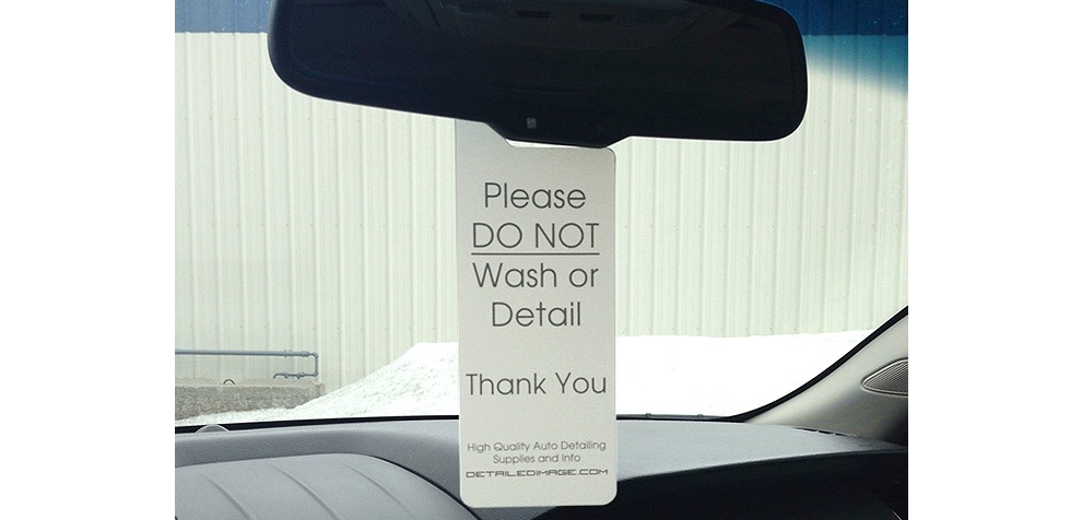 This is why we here at Detailed Image have come up with the DI Accessories “Do Not Wash” Rear View Mirror Hang Tag! Simply hang this on your rear view mirror before you hand your car off so everyone who comes in contact with it knows to NOT wash or detail your car. This hang tag is one sided, measures 3.375″ x 9″ and it is made of sturdy .035″ white polyethylene, so you know it will last. When you are not using this tag simply throw it in your glove compartment for easy storage. This will also allow you to always have it on hand for easy access whenever you drop off your car!
