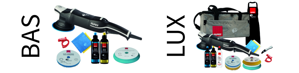 Rupes has released these units as both individual units and with two different kit options. The individual units come as the LHR15 and LHR21 that we are all used to, which is just the unit and backing plate. For the kits, there are two options, the BAS Kit and LUX Kit for each of the LHR15 and LHR21. The BAS Kit comes with pads, polishes, microfiber towels and a cord clamp. The LUX Kit has everything the BAS Kit has, but adds more pads, an extra polish, an extra microfiber towel, polisher bag, apron and pad claw. You can check out the photos of the options below, with links to each on our website!