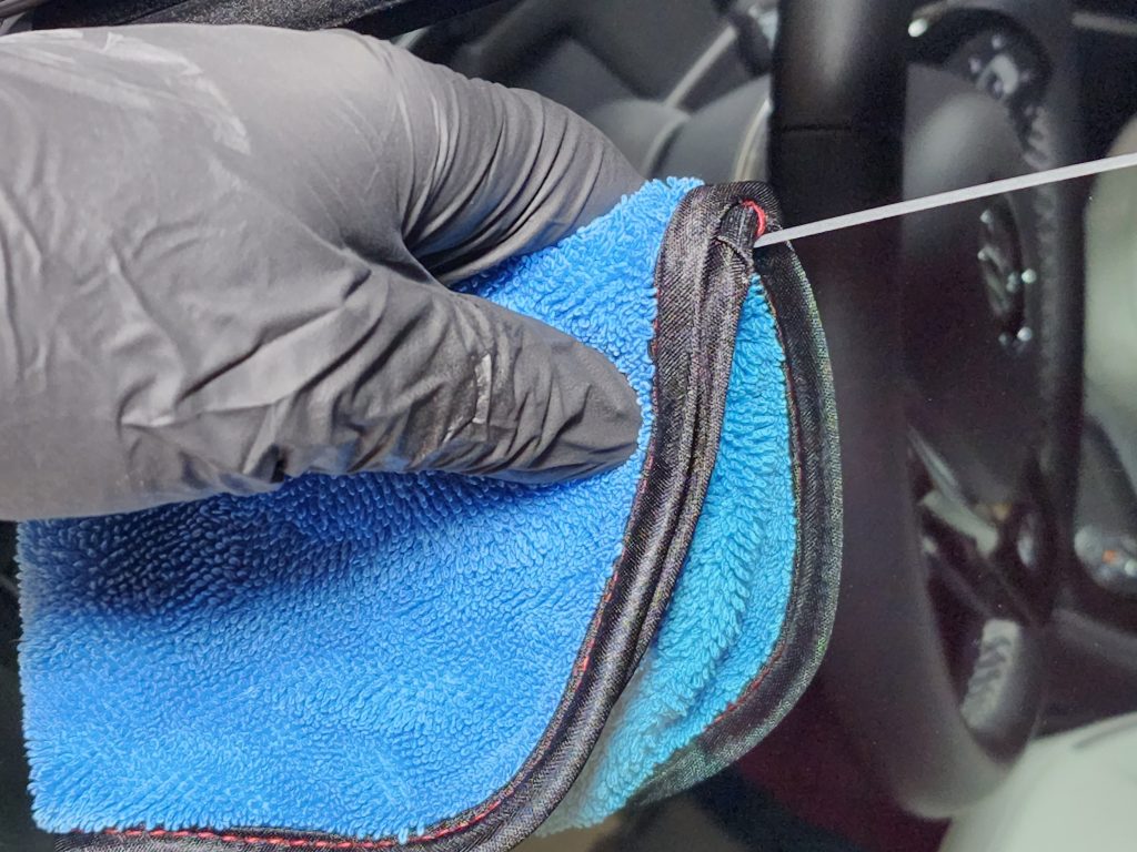 Having some smaller than usual microfiber for intricate areas helps make your life so much easier.  Although the picture (below) shows one of the many 8′ by 8′ microfiber glass towels I own, Autofiber makes very good miniature glass towels.  Smaller towels made for cleaning sport cars score high marks in terms of user experience.  In lieu of trying to get into intricate areas, you are also trying not to rub your towels on to the surrounding surfaces that carry dirt, lint, and oils.