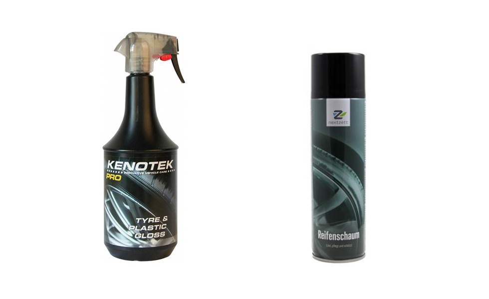 New from Kenotek: Tire and Plastic Gloss. Just spray and wipe. This high-quality plastic and tire renovator provide a deep gloss on all external bumper-, rubber- and plastic surfaces. Will not sling or leave run marks after washing or rain. Can also be used as an engine dressing. Repels dust and water for a long-lasting finish. Just spray and work into surface with a foam applicator sponge.