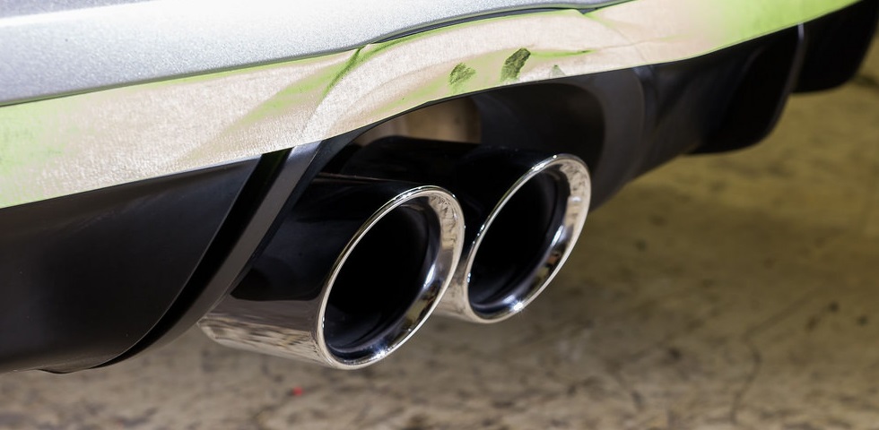 When we got to the exhaust, the dark black finish seemed to go right along with the rest of the color scheme, so at first we assumed it was just part of the overall look of the car… until we took a closer look and saw a glimmer of shine beneath that heavy black build up.