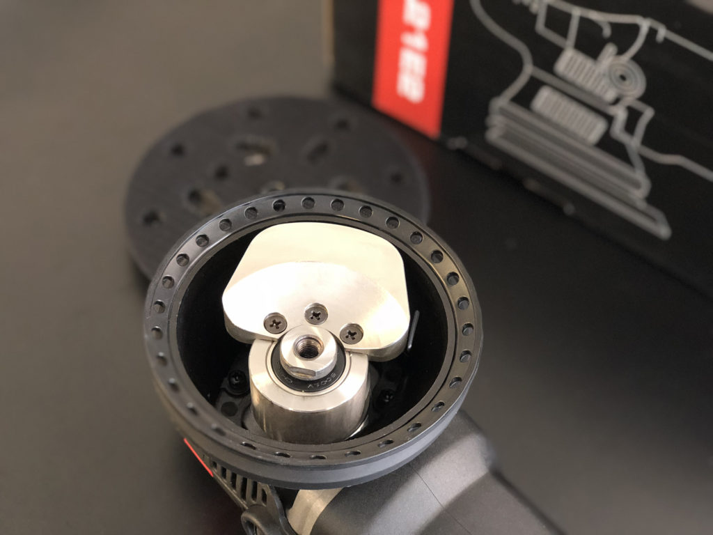 The business end of the Zentool ZEN-21E2 where it converts all that rotation to a 21mm dual action is a thing of beauty. Precision machining meets computerized modeling to make an offset counterweight assembly that is a thing of beauty. The design team managed to increase the rotating mass, this means smoother running, and not as pad weight dependent to maintain that smooth vibration free experience detailers need. Having a higher rotating mass allows the Zentool to work comfortably with both the included 5 and 6 cross ventilated backing plates.