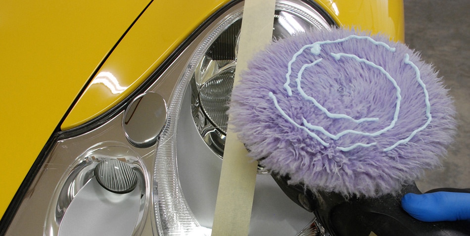 Normally we use the Flex 3401 polisher, so unless the headlights are an odd shape or hard to reach, we will simply stick with the 3401 and use a 5″ Lake Country Purple Foamed Wool Pad with M105 or M100. Even a quick few passes with this combination will correct the lens really well and leave a great finish, so we try to do it on every detail job where the lenses seem a bit swirled or hazed. As mentioned, below are some of the photos we took recently while doing a paint correction on a gorgeous yellow GT2. Sorry in advance for the half-decent photos, for some reason they didn’t come out well inside the garage.