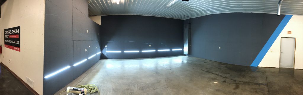 The office space was nice, but painted a very bright yellow that wasn’t doing it for me. There are 3 “office” spaces when you walk-in, a walk in entry and front desk room as well. I will be turning these into an office for the plotter and a media/design computer, a lounge type area, and a conference/design room, showcasing many samples of different wrap colors, powder colors, tint, etc. I will also be hanging a TV in this room in hopes to use for client renders. More to come on this in the future, as it’ll be a continual work in progress. Each room got new paint and is now awaiting cleanup and stuff moved into them.