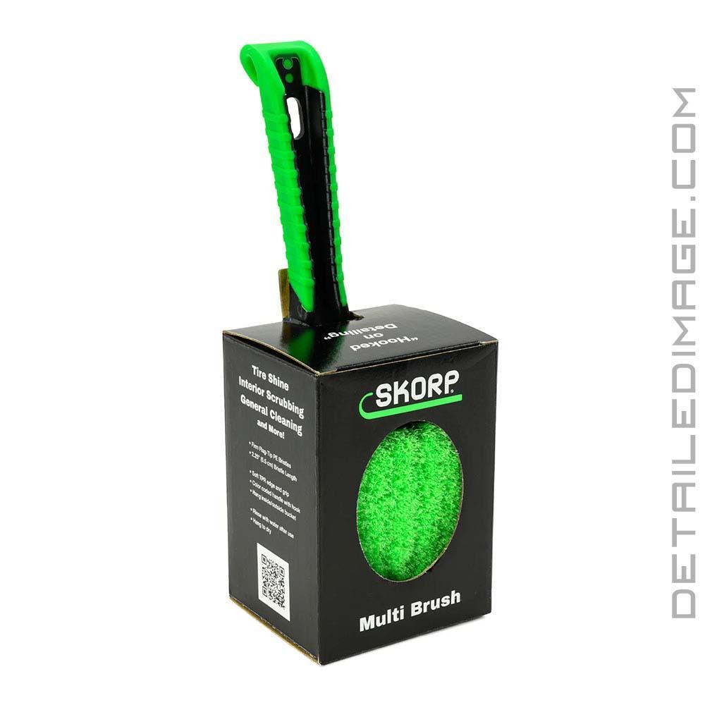 The Autofiber SKORP Brushes are designed with a durable, ergonomic construction that balances scrubbing power with control and comfort. Each brush features a sturdy, chemical-resistant handle that provides a secure grip during intensive cleaning. The design utilizes firm yet flexible, synthetic bristles that effectively agitate dirt, grime, and embedded contaminants without excessive flex or premature wear, making them suitable for repeated use on a variety of surfaces. Each brush head is engineered for consistent contact and even pressure distribution, helping you clean more efficiently while reducing fatigue. Another cool feature is the flexible rubber hook located at the bottom of the handle that allows you to hang the brush on your bucket, your detailing cart, a shelf hook, or even on a wall mount for easy storage and drying between uses. Built with detailers in mind, the SKORP Brush lineup delivers a reliable combination of build quality, ease of use, and durability for both interior and exterior applications.Each SKORP brush is color coded, so you reach for the correct brush, every time.