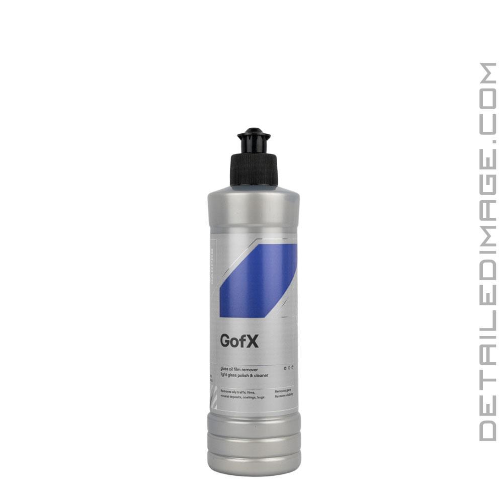 The CarPro GofX Glass Traffic Film Oil Remover is a powerful glass restoration product that quickly restores clarity and smoothness to any exterior glass surface. It is a hybrid formula that blends chemical cleaners and very fine abrasives to remove stubborn films, bug residue, water spots, mineral deposits, and even old, dying coating layers that normal glass cleaners can't touch. Use GofX by hand or machine, on wet or dry exterior glass surfaces, to leave windows clean, crystal clear, and ready for your preferred sealant or coating. After use, simply wipe clean and enjoy enhanced visibility with the CarPro GofX Glass Traffic Film Oil Remover!Important: This item cannot be shipped, sold, or used in the state of California. CARB in California claims this item breaks their VOC regulations.