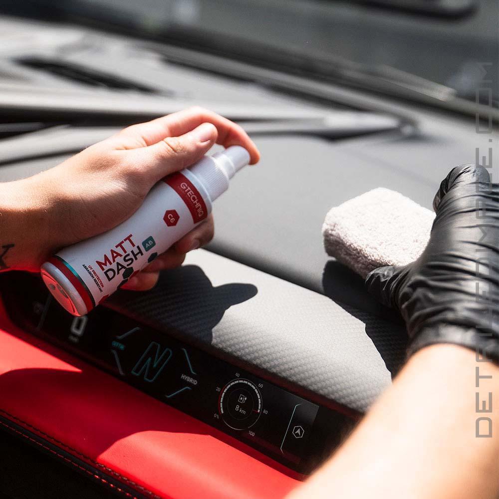 The Gtechniq C6 Matte Dash AB allows you to clean, disinfect and protect your dashboard with an easy to apply formula. This durable interior protectant is designed to protect your plastic, rubber, vinyl, and leather surfaces from damaging UV rays, dirt, water, static and abrasions. To apply, simply spray down the desired area and immediately wipe away with a clean microfiber towel. You will be left with a protected surface that is not greasy, sticky, slippery, or even shiny. What you will have is a natural, dry feeling surface that is matte in looks. As an added bonus, Gtechniq added BioCote antimicrobial technology, and they state that treated surfaces will eliminate 99.9% of bacteria. If you are looking to protect your plastic, rubber, vinyl or leather surfaces, the Gtechniq C6 is an awesome choice!Application Instructions: