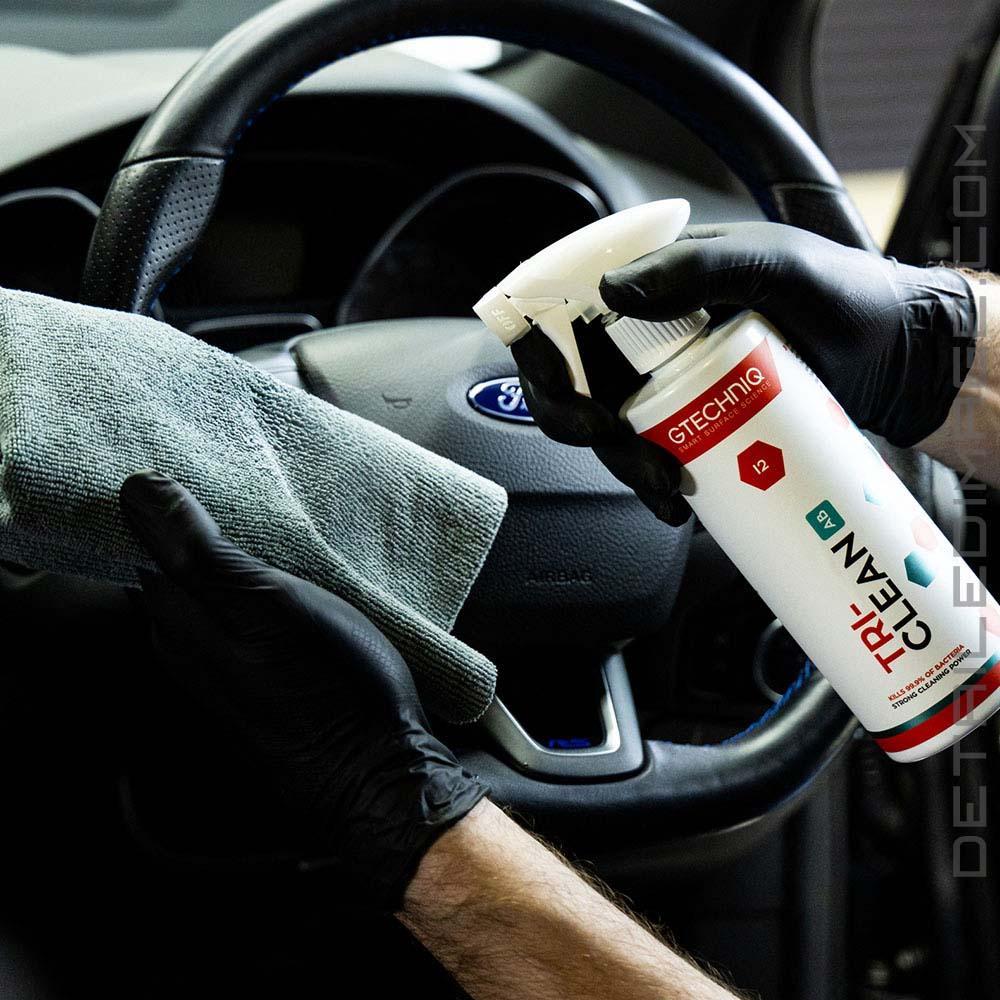 The Gtechniq I2 Tri-Clean AB cleans, disinfects and removes odors on various interior surfaces so your car looks clean and truly is clean! Gtechniq worked with BioCoate, which is a global leader in antibacterial and antimicrobial technology, to formulate I2. This high-end formula cleans surfaces, kills 99.9% of bacteria, absorbs odors, and ensures surfaces remain hygienic and fresh by actively reducing the number of microbes. This means surfaces including leather seats, dashboards, carpets, and upholstery are cleaner and smell better, not just masked with the product. To apply, spray I2 onto a MF1 ZeroR Microfibre Buff Cloth or a clean microfiber towel and apply to the surface. Wipe until the surface is clean, flipping to a new side of the towel as needed. I2 is generally safe for most surfaces, but Gtechniq recommends spraying onto a small inconspicuous area first and inspecting the results before full application like you would with any cleaner. If you are looking to hit a triple and clean, disinfect and deodorize, the Gtechniq I2 Tri-Clean AB is the bottle you should be reaching for!Videos