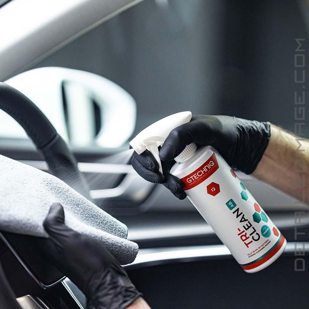 Tri-Clean is an all-surface interior cleaner that cleans and also kills 99.9% of bacteria. Developed in conjunction with the global leader in antibacterial technology, BioCote, Tri-Clean ensures surfaces remain hygenic abd fresh, by actively reducing the number of microbes and macteria. Thr-Clean also contains a true odour absorber, not an odour mask, that eliminates tack residues that attract dirt.