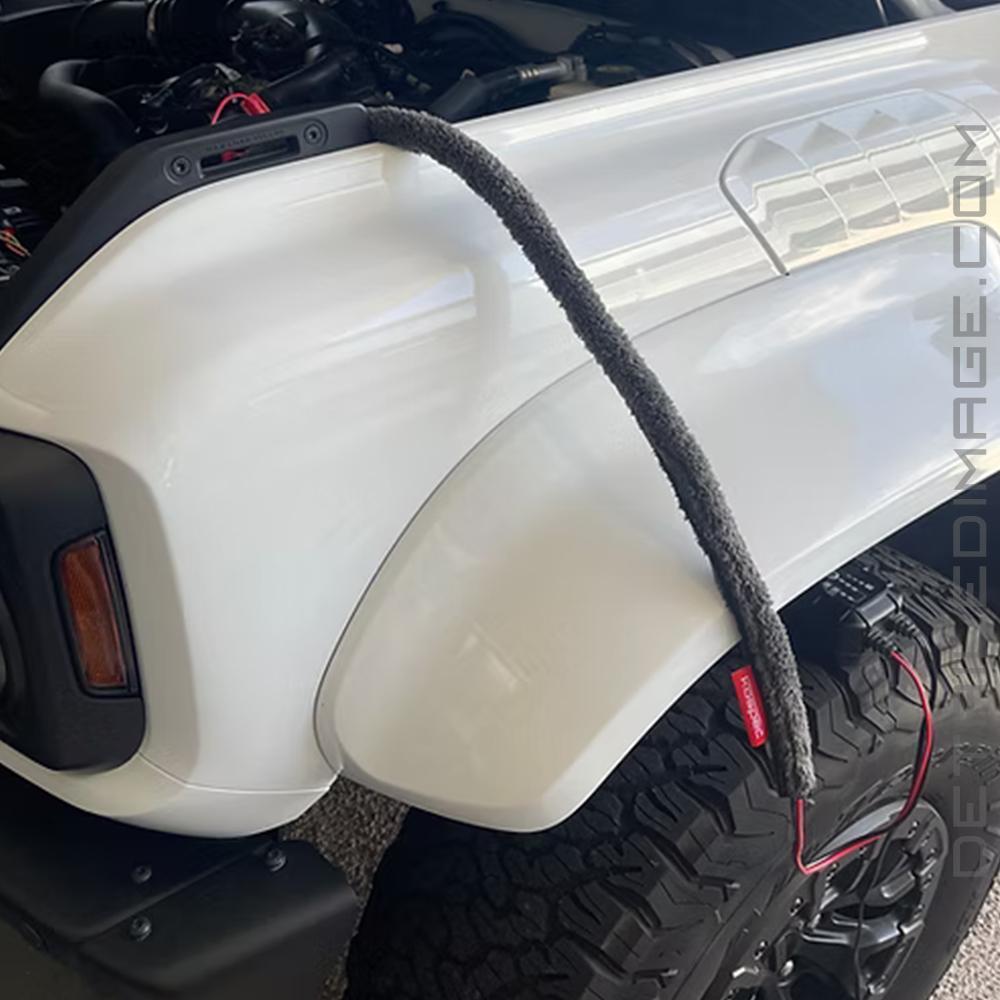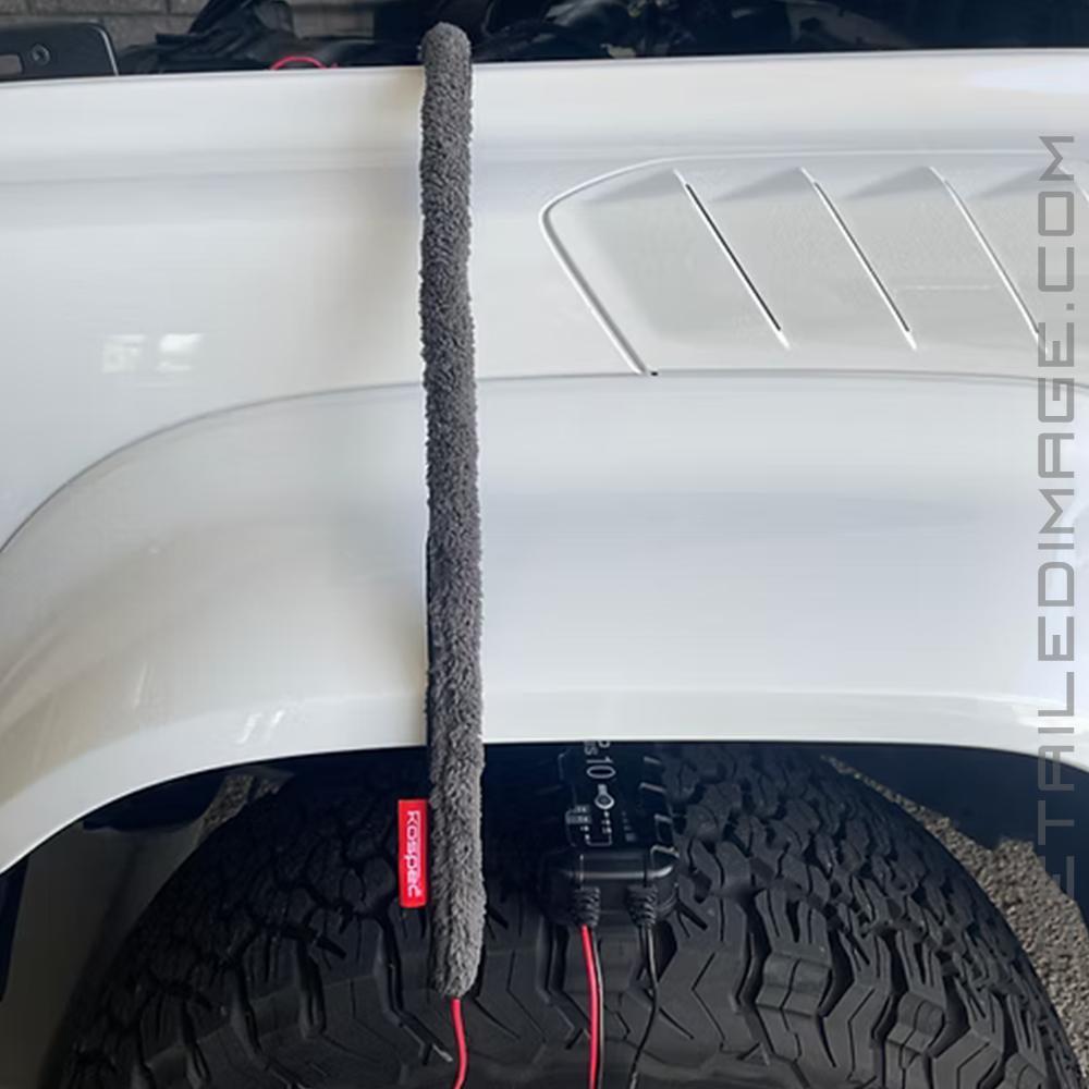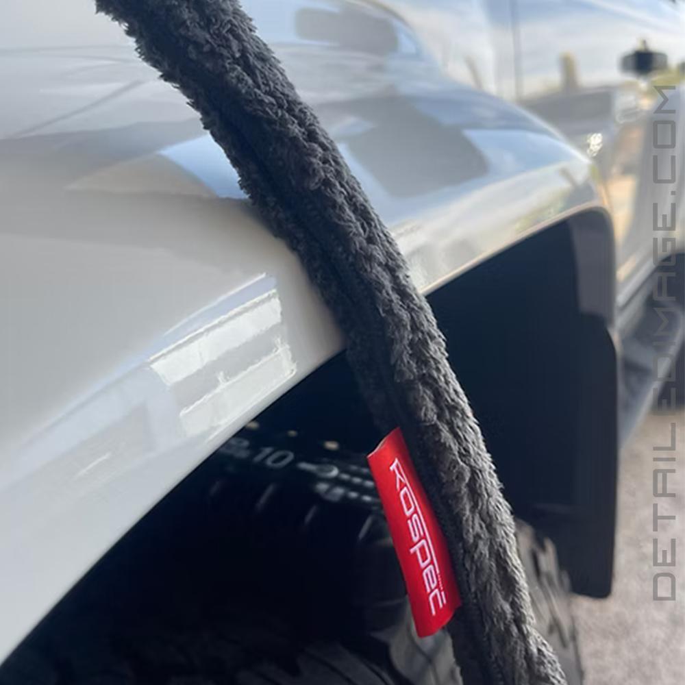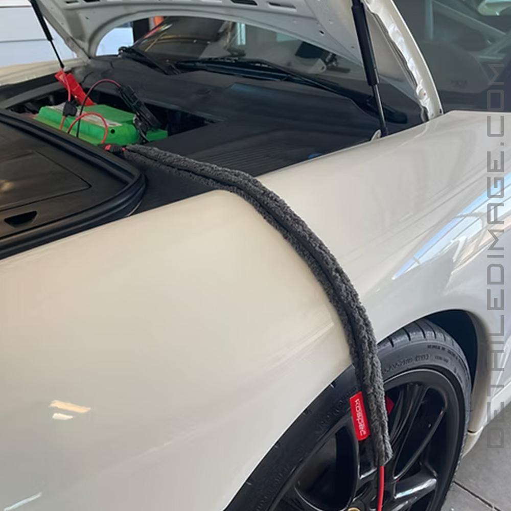 The Kospec Designs Battery Tender Sleeve is an ultra thick microfiber material that aids in protecting your paint and interior surfaces from tough power cords! This innovative design features a thick microfiber material that acts as a cushion, absorbing impact and preventing scratches, swirls, and other marks that can be caused by accidental contact with the cord. Use the Battery Tender Sleeve to wrap your power cord and safely setting it across any painted surfaces while the battery tender is in use. This sleeve easily fits over your cord and the split-velcro fastening system securely holds the sleeve in place. Whether you are a car collector, professional detailer or a meticulous car enthusiast, the Kospec Designs Battery Tender Sleeve is an essential tool for avoiding imperfections from power cords!Kospec Designs Sleeve Options: