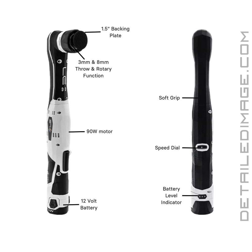 Compact in size but loaded with capability, the Liquid Elements A1000 1" Cordless Polisher is built to handle the spots other machines cannot reach. From trim and narrow panels to focused correction work, it gives you precise control where it matters most. Its interchangeable drive system lets you adapt the machine to the job at hand, allowing you to swap between 3 mm or 8 mm eccentric motions and rotary more for versatile usage. A 90 W motor paired with a 12 V lithium battery keeps the power steady across its 2,500 RPM - 6,000 RPM range, delivering consistent results without the drag of a power cord. Each battery runs for around 45 minutes and recharges in close to an hour. Two batteries are included, keeping you moving with minimal interruptions. The lightweight, ergonomic build reduces fatigue during extended sessions, and the included kit (multiple mechanisms, backing plate, and essential batteries and charger) means you are ready to work straight out of the box. The Liquid Elements A1000 1" Cordless Polisher puts flexibility, mobility, and precision in the palm of your hand!Specifications: