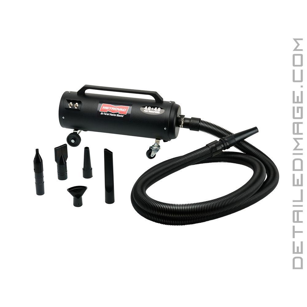 Metro Vacuums Master Blaster Revolution Car Dryer will allow you to remove water from the surface of your car without ever having to touch it! Water blades, towels and other drying media are prone to micro-marring and these imperfections can really dull the surface of your vehicle. The Revolution Car Dryer allows you to avoid the ugly micro-marring, scratches, water marks, etc. while leaving behind a clean dry beautiful surface. Pesky water will often hide in cracks and crevices of your vehicle and drip out causing streaks and water spots when you least expect it. The Master Blaster Revolution is the perfect tool to help remove the water behind side view mirrors, trim, wheels, lug nuts, rubber moldings and so much more! This blower packs a powerful 8 HP two stage dual fan motor that features 58.500 ft of air per minute that will help you remove any water and dry off your entire vehicle within minutes! Each of these motors is controlled by a separate switch, which allows you to select from three different air flow and temperature levels. With the 16lbs weight and the mobility of the front end swivel wheels, you can now move around your vehicle effortlessly. Easier mobility means getting the detailing job done quicker and more efficiently! Once finished hang it up on the included wall mount for easy storage and access for your next detail. If removing water from the surface of your car safely and easily is your goal, the Metro Vacuums Master Blaster Revolution is for you!Specs: