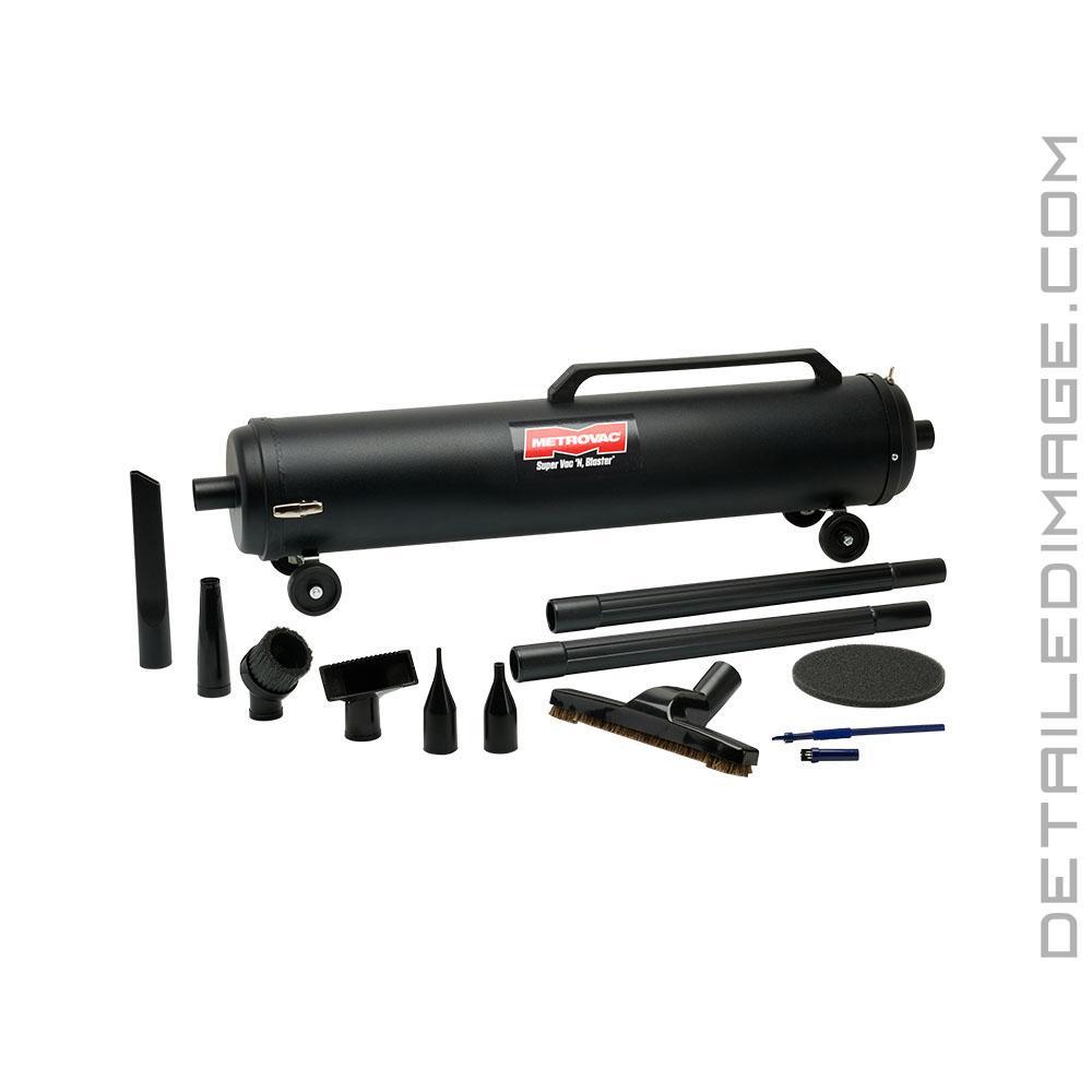 The Metro Vacuums Super Vac N Blaster is a professional-grade tool for vehicle drying and vacuuming, making your cleaning routine faster, more efficient, and more enjoyable! Designed for the detailing industry, the Super Vac N Blaster harnesses the power of a high-performance 4.0 peak horsepower motor that generates an incredible airflow of up to 58,500 feet per minute, delivering a blast of air to quickly, so you can effectively dry your vehicle after washing. With an ergonomic design and lightweight construction, the Super Vac N Blaster is easy to maneuver, allowing you to effortlessly reach every nook and cranny of your vehicle. The integrated wheels provide smooth mobility, ensuring hassle-free operation. If you don't like rolling it no worries the wall mount allows you to easily hang the unit during use and for easy storage after a detail. As a powerful blower, it uses warm, dry, filtered air that provides a safe, touchless drying experience without the chance of scratching expensive paint and chrome finishes. It won't cause scratches, streaks, or spots like towels and chamois can during the drying process. It clears standing water from your exterior surfaces quickly, or blasts contamination out of interior nooks and crannies for easy clean up. Not limited to exterior applications or use of only the blaster, the Metro Vac Super Vac N Blaster is equally impressive when it comes to interior detailing and vacuuming. Versatile attachments and accessories enable you to tackle upholstery, carpeting, and hard-to-reach areas with ease. Effortlessly remove dust, dirt, and debris from your car's interior, leaving it spotless and fresh. The machine features a durable all-steel construction, ensuring long-lasting performance and the balanced design provides stability during operation, preventing any accidental tip-overs. Additionally, the Super Vac N Blaster incorporates a range of user-friendly elements. The conveniently located controls allow for easy operation, while the 12 Ft. Heavy Duty 3 Conductor power cord ensures flexibility and freedom of movement. The included 10 foot commercial hose and nozzle attachments provide precise airflow control, allowing you to target specific areas for maximum efficiency. Whether you're a professional detailer or a passionate car enthusiast, the Metro Vacuums Super Vac N Blaster is an exceptional tool that will make every cleaning session a breeze!Specifications: