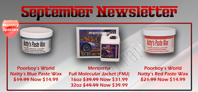 Washing & Drying | Quick Detailer | Clay Bar | Polish | Glaze | Sealant | Wax | Buffers, Pads, & Misc. Microfiber | Wheel & Tire | Exterior Trim | Glass | Interior Care | Leather | Engine Bay Accessories & Tools | DI Packages | Gift Certificates You are receiving this email because you are subscribed to the Detailed Image newsletter. If you do not want to receive any more emails, please follow [UNSUBSCRIBE] to unsubscribe. Please do not reply to this email.
